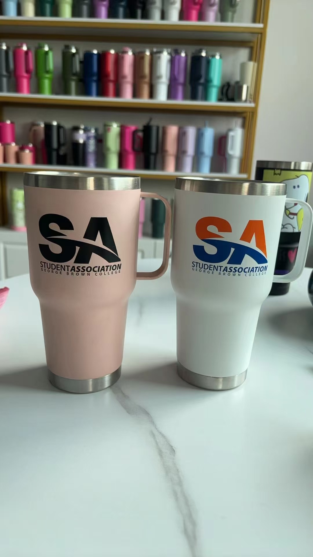 Fit North American students’ daily routines (classes, commutes, club activities).Highlight the SA’s brand identity for ongoing campus exposure.Withstand Canada’s extreme seasons (reliable heat/cold retention).The Solution: 40OZ Tumbler CustomizationTailored to campus needs, we delivered 40-ounce insulated tumblers with three core upgrades: